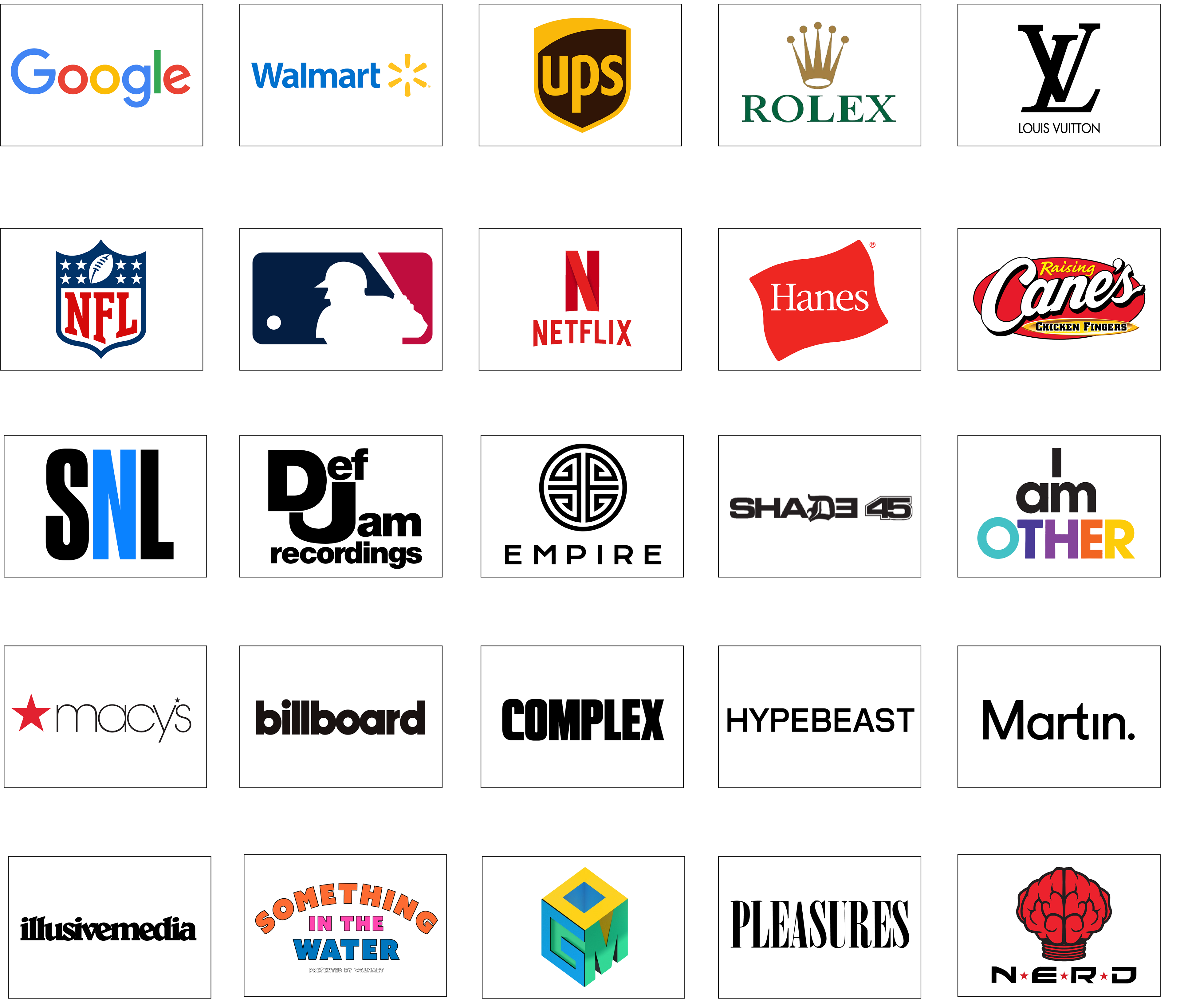So & So Productions has collaborated with a range of artists, including Pharrell Williams, Lil Wayne, Ciara, 50 Cent, Ty Dolla $ign, and Tyga, to name just a few. We have also worked with companies such as the NFL, Walmart, Hanes, Google, Louis Vuitton, Def Jam, Empire, Dillard’s, and many others.